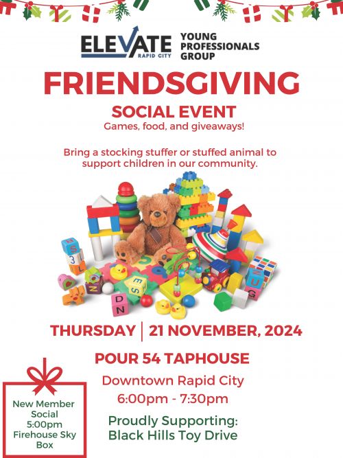 Join the Young Professionals Group as they host Friendsgiving at Pour 54 Taphouse. There will be a New Member Mixer at 5:00 pm. Location is TBD.