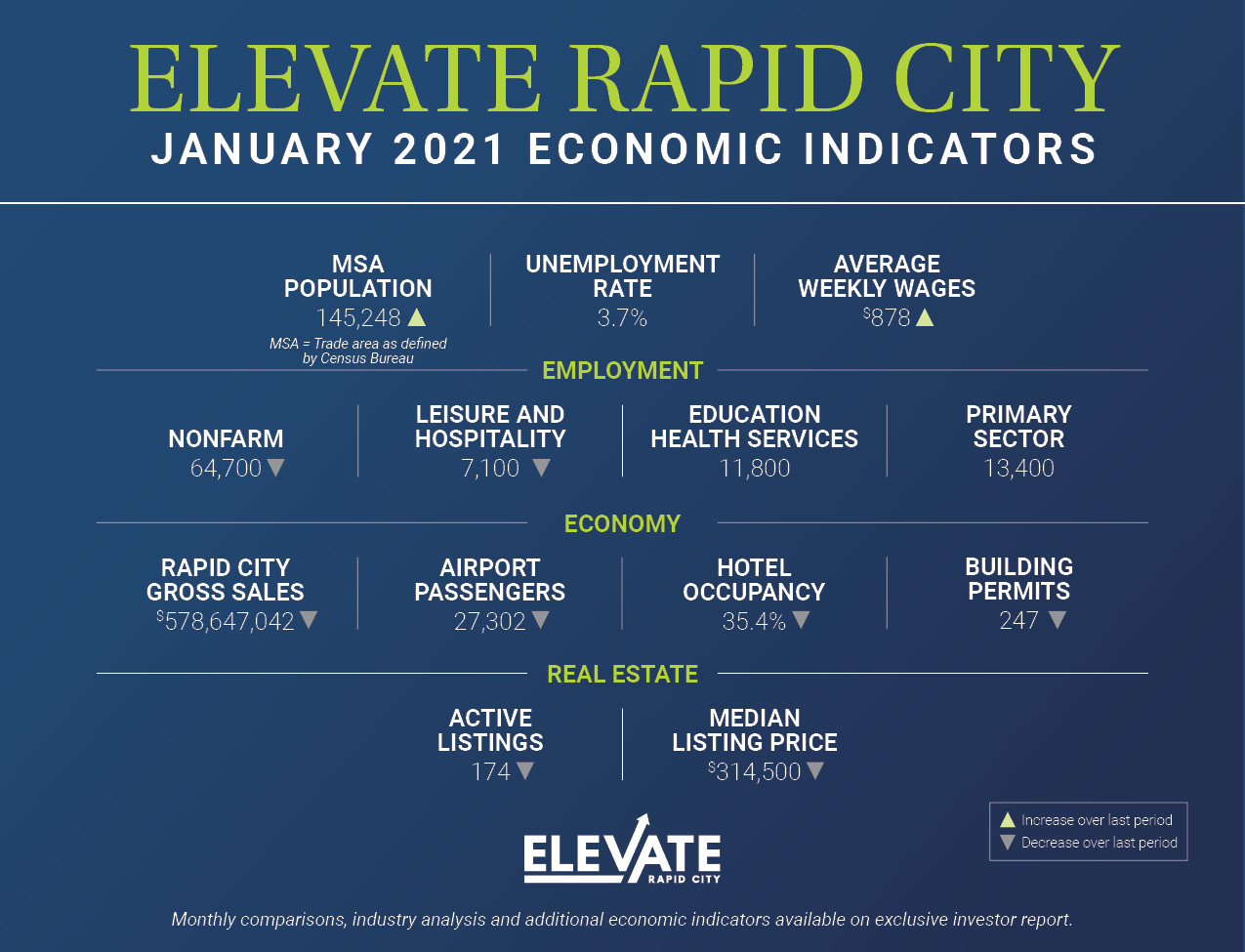 January's Economic Indicators, our first set of economic indicators for 2021, pours the sugar on, too. First, notice that we've adjusted Rapid City's trade-area population to 145,248. This represents a growth rate of more than 1% over the last year. And it puts Rapid City on par with the growth rate of Sioux Falls over the same time period. Indeed, the migration data also supports this notion. In the last three tracked years (2016-2018), Rapid City pulled more people from Sioux Falls than Sioux Falls pulled from Rapid City (59 residents, but who's counting). Be sure to tell all your friends in East River.