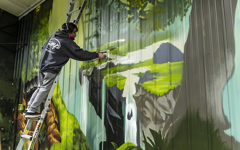 As he's putting the finishing touches on his latest mural, kids will now imagine they are playing in the wilderness when they visit Run Wild.
