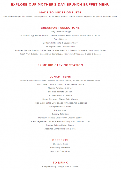 Details: Join Hotel Alex Johnson for an iconic Mother's Day Brunch Buffet in the heart of downtown Rapid City. Enjoy bountiful buffet spreads and make this Mother's Day historic.