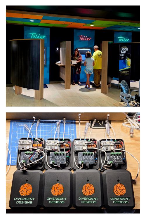 Developed in partnership with Black Hills Federal Credit Union, the Smart Sign Controller enhances privacy for virtual teller machines. Using a discreet radar sensor, it signals when kiosks or registers are available without exposing customer activity. The customizable sensor can be fully concealed, ensuring both privacy and modern aesthetics.