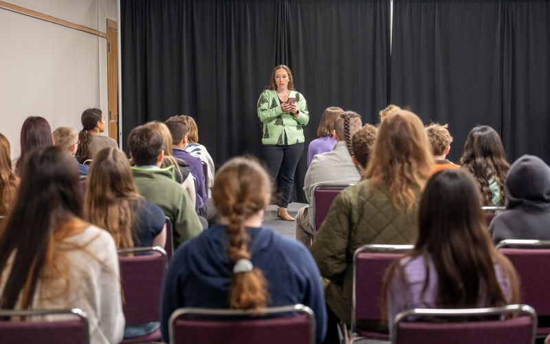 The morning continued with a session on community ownership, led by Nick Van Dyne (Black Hills Coffee Company), Chalberg, Potts, and Callie Meyer (Visit Rapid City). Participants explored ways to take ownership in classrooms, groups, families, and their communities by contributing, collaborating, and fostering a positive culture where everyone can thrive. Students toured The Monument, observing features that make the space navigable, identifying areas for improvement, and discussing how to propose changes through the appropriate channels. They also observed a practice session and spoke with Rush Coach Dave Smith, gaining firsthand insight into how leadership and teamwork play out in high-pressure, real-time situations, as well as how to make thoughtful, healthy decisions in everyday moments of pressure.